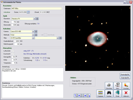 Ein selbstgeschriebenes Programm dient der Verwaltung meiner astro-