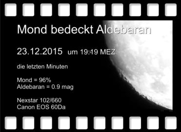 die Sternbedeckung von Aldebaran völlig vergessen. Als ich mit der Arbeit fertig war, blieb mir