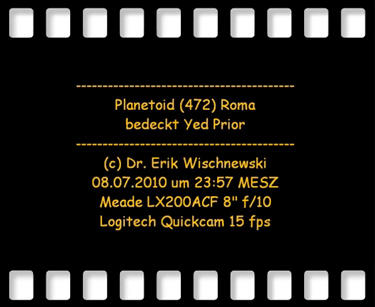 21:57 UT vom Planetoiden (472) Roma für etwa 6
