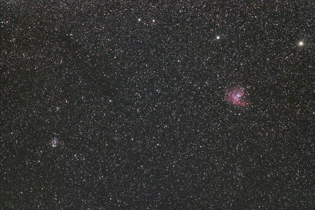 Affenkopfnebel NGC 2174 mit Quallennebel IC 443 und offenen Sternhaufen Messier 35 und NGC 2158
