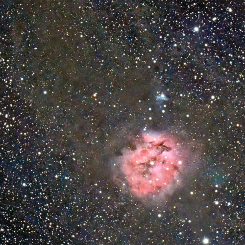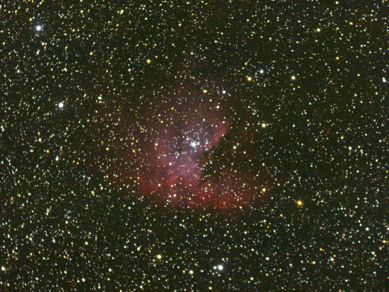 Aufgenommen mit ED-Apochromat 127/600 mm (Reducer), Canon EOS 60Da bei ISO 3200 und 32 s, Gesamtbelichtung = 51 min (96 Aufn. je 32 s).