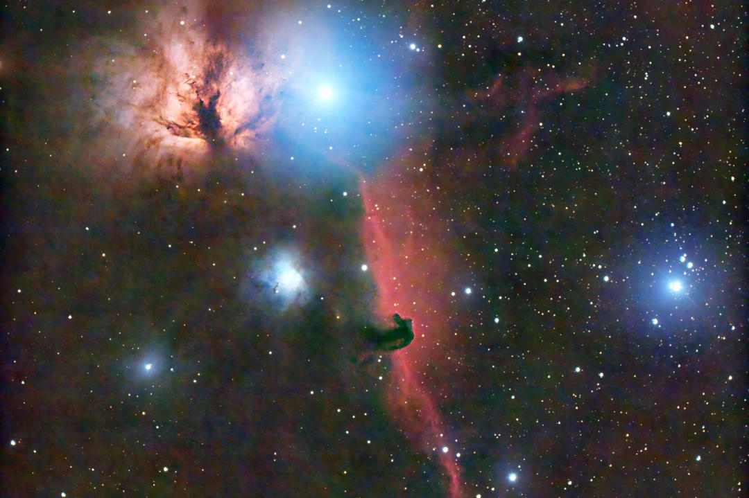 Flammennebel NGC 2024 mit Pferdekopfnebel IC 434 und Reflexionsnebel NGC 2023