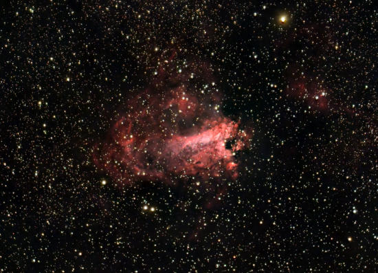 Messier 17 wird hierzulande auch Omeganebel genannt.