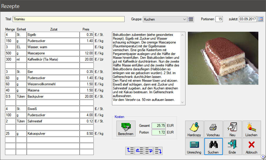 Schon 1980 hatte ich mir für meinen Commodore PET ein Programm geschrieben, mit dem ich Rezepte verwalten konnte. Heute ist es etwas