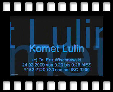 Der nebenstehende Film zeigt die Bewegung des Kometen innerhalb von 6 Minuten am