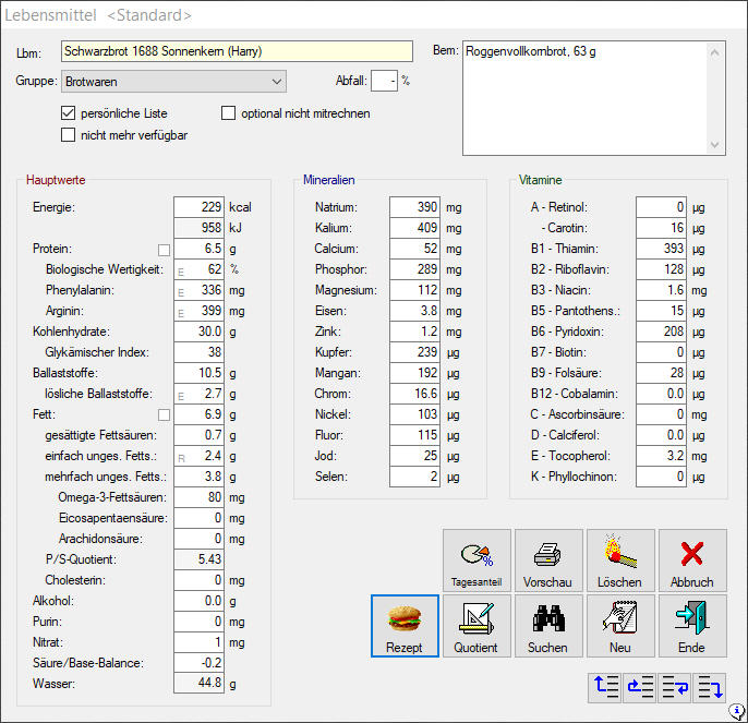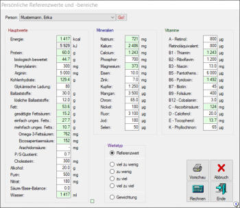 gibt zahlreiche spezielle Funktionen wie ›Ergänze‹ und ›Nährwertquotient‹. Zur