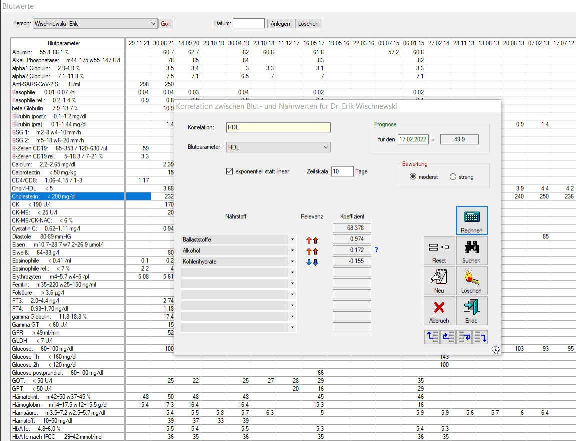um Beziehungen zwischen Ernährung und Blut zu ermitteln. Die Datenbank ist