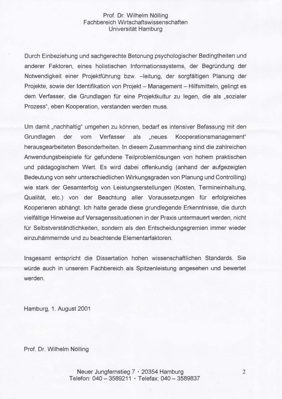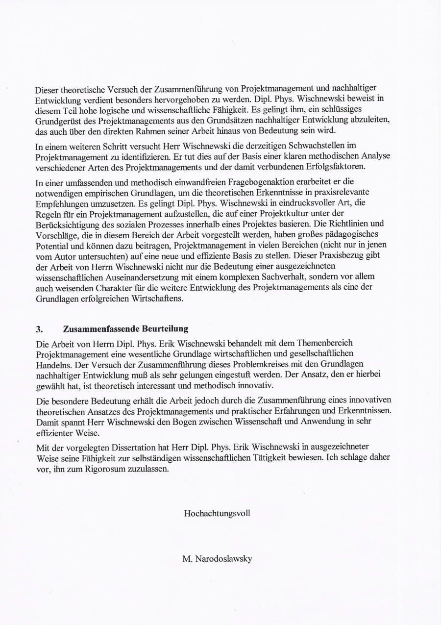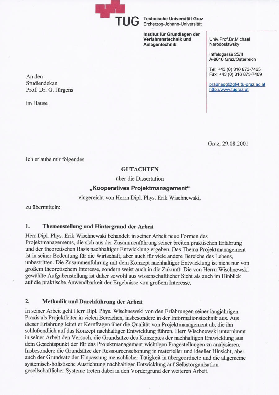 tete ich an einer neuen Dissertation. Am 05.09.2001 wurde ich dafür unter