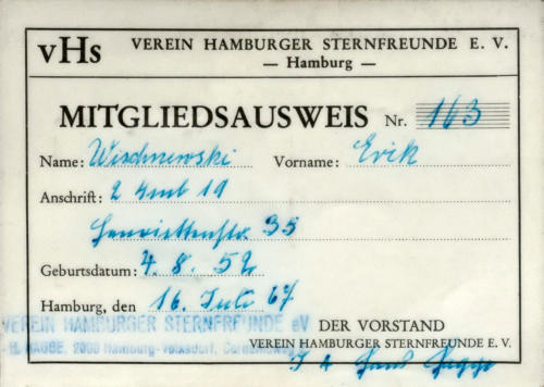 Eintritt in den Verein Hamburger Sternfreunde (heute: Gesellschaft für volkstümliche Astronomie (GvA)